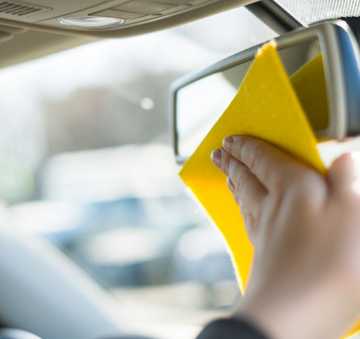 En komplett innvendig bilvask i Gjerstad omfatter også vinduer, speil og andre glassoverflater.